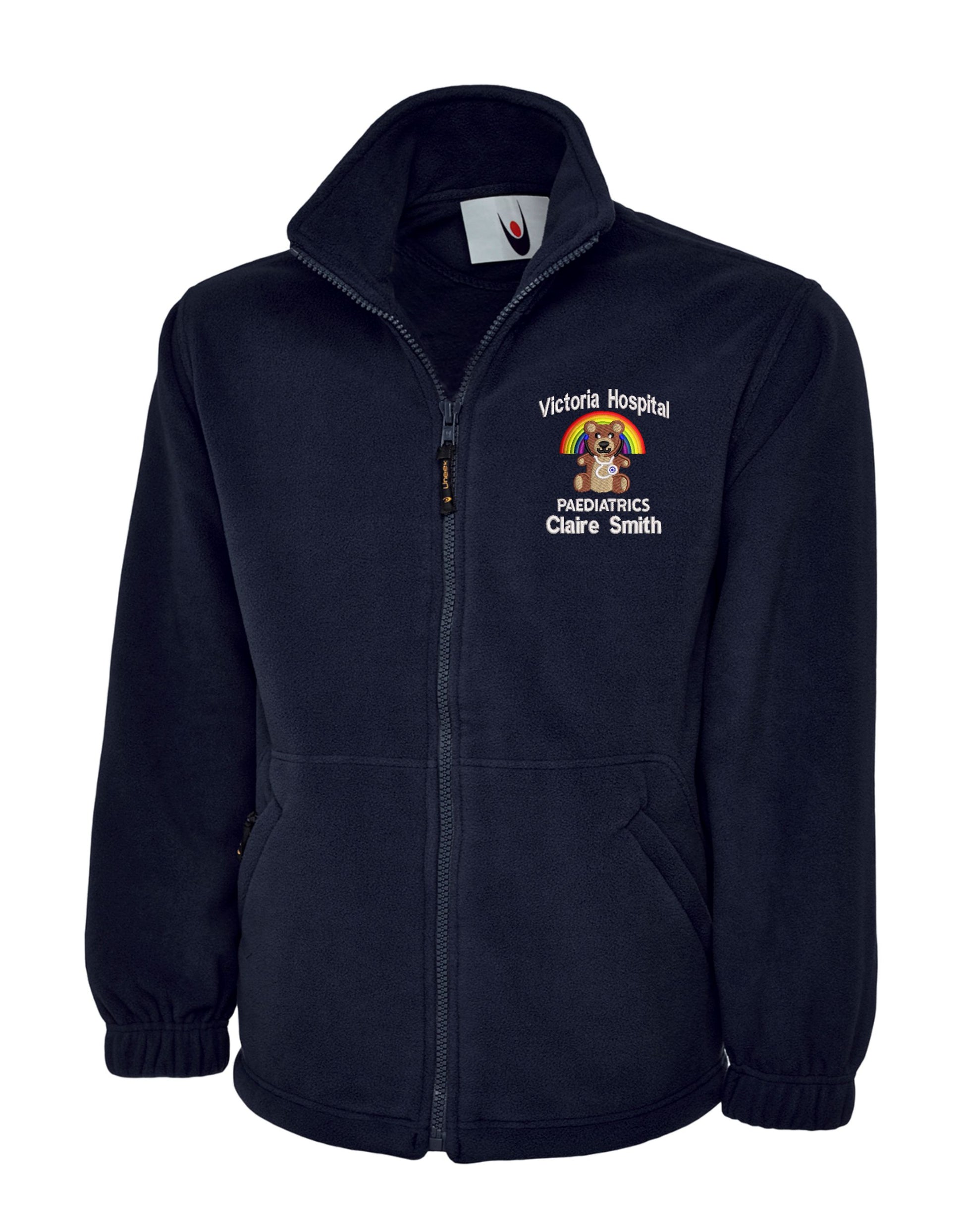 Our original designed nhs Paediatrics logo Embroidered onto the Zipped Fleece Jacket. We can also add extra details such as your Staff Name and/or Hospital Free of charge! Make sure to fill in the text box when you order.����